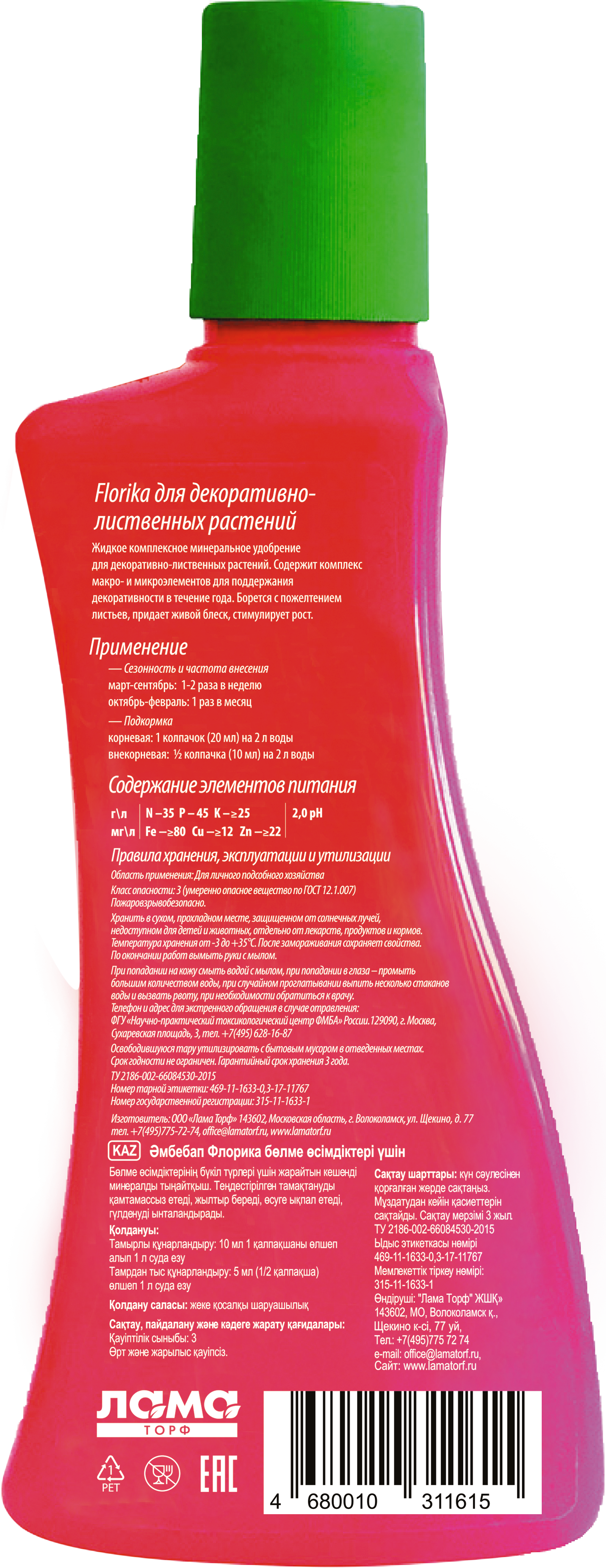 Жидкое комплексное минеральное удобрение для декоративно-лиственных растений. Содержит комплекс макро- и микроэлементов для поддержания декоративности в течение года. Борется с пожелтением листьев, придает живой блеск, стимулирует рост.