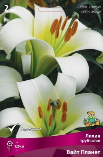 Вайт Планет - высота растения 120 см, цветок белоснежный с зеленцой у основания, цветки направлены вверх.