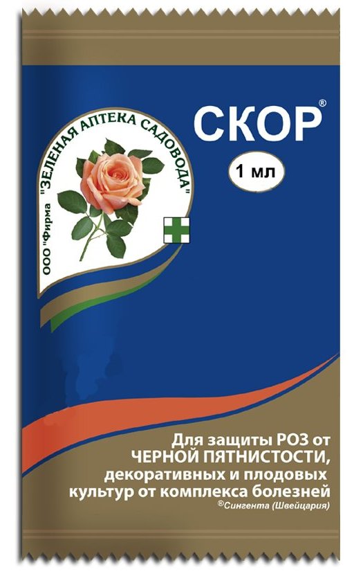 мучнистой росы. Скор проникает в растение и защищает изнутри. Не смывается дождём. Надолго защищает от инфекции, не допускает перезаражения.