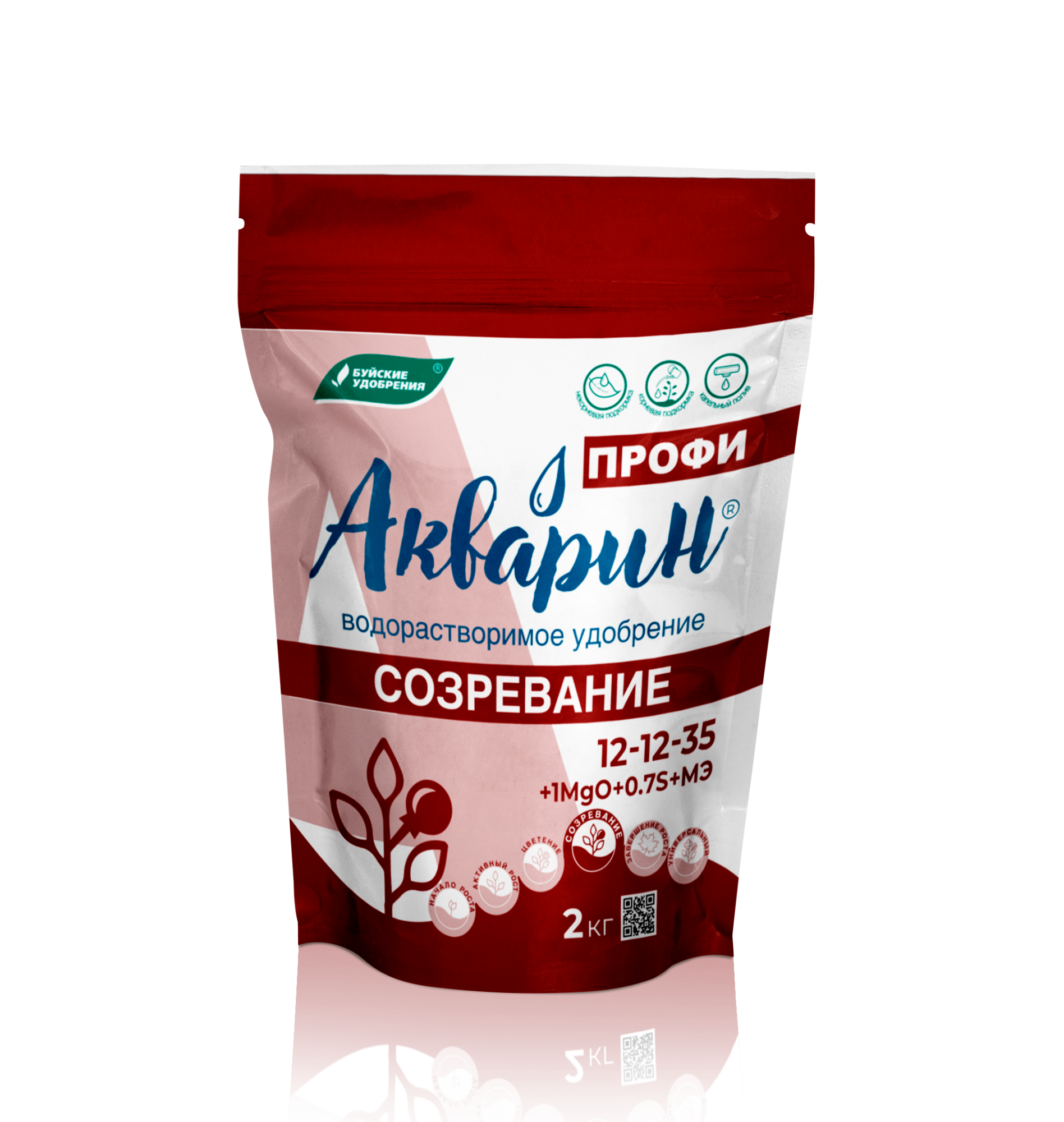 "Акварин Профи" созревание - водорастворимое удобрение, в состав которого входит азот, фосфор, калий, магний, сера и микроэлементы – железо, цинк, марганец, медь в хелатной форме, а бор и молибден – в минеральной. Благодаря кислой реакции (рН) удобрения, оно легко растворяется в холодной воде и более эффективно усваивается корневой системой или листовой поверхностью растений. Рекомендуем хранить в сухом, прохладном месте. Готовые растворы необходимо использовать полностью.